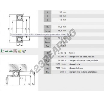Il Cuscinetti A Sfera, noto come 61911-INA INA, ha un diametro interno di 55 mm, un diametro esterno di 80 mm e uno spessore di 13 mm.