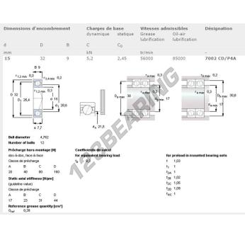 Il Cuscinetti A Sfera, noto come 7002CD-P4A-SKF SKF, ha un diametro interno di 15 mm, un diametro esterno di 32 mm e uno spessore di 9 mm.