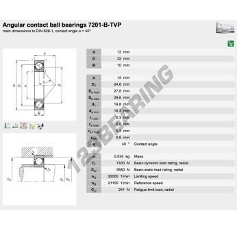 Il Cuscinetti A Sfera, noto come 7201-B-XL-TVP-FAG FAG, ha un diametro interno di 12 mm, un diametro esterno di 32 mm e uno spessore di 10 mm.