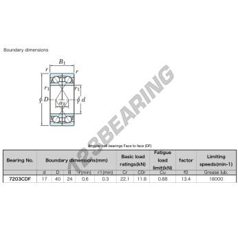 Il Cuscinetti A Sfera, noto come 7203-CDF-JTEKT JTEKT, ha un diametro interno di 17 mm, un diametro esterno di 40 mm e uno spessore di 24 mm.