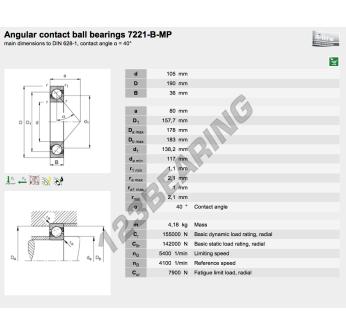 Il Cuscinetti A Sfera, noto come 7221-B-MP-FAG FAG, ha un diametro interno di 105 mm, un diametro esterno di 190 mm e uno spessore di 36 mm.