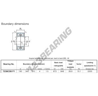 Il Cuscinetti A Sfera, noto come 7238-CDB-FY-JTEKT JTEKT, ha un diametro interno di 190 mm, un diametro esterno di 340 mm e uno spessore di 110 mm.