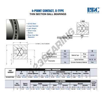 Il Cuscinetti A Sfera, noto come KG180XP0-RBC RBC, ha un diametro interno di 457.2 mm, un diametro esterno di 508 mm e uno spessore di 25.4 mm.
