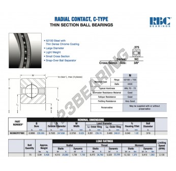 Il Cuscinetti A Sfera, noto come NC090-CP0-RBC RBC, ha un diametro interno di 228.595 mm, un diametro esterno di 247.658 mm e uno spessore di 9.525 mm.