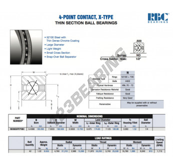 Il Cuscinetti A Sfera, noto come ND065-XP0-RBC RBC, ha un diametro interno di 165.095 mm, un diametro esterno di 190.508 mm e uno spessore di 12.7 mm.