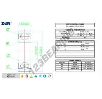 Il Cuscinetti A Sfera, noto come S6200-ZEN ZEN, ha un diametro interno di 10 mm, un diametro esterno di 30 mm e uno spessore di 9 mm.