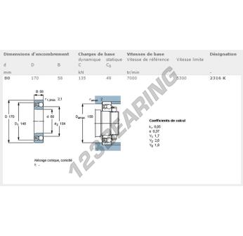 Il Cuscinetti Orientabili A Sfere, noto come 2316-K-SKF SKF, ha un diametro interno di 80 mm, un diametro esterno di 170 mm e uno spessore di 58 mm.