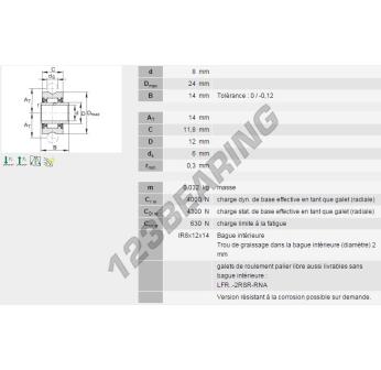 Il Rotella A Sfere, noto come LFR22-8-6-2RSR-NA-INA INA, ha un diametro interno di 8 mm, un diametro esterno di 24 mm e uno spessore di 14 mm.