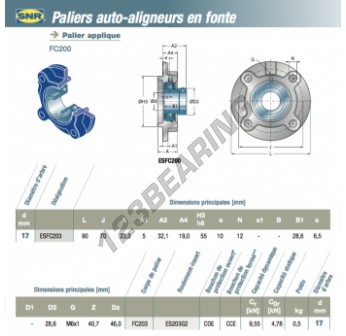 Il Supporto In Ghisa - 4 Fissaggi noto come ESFC203-SNR SNR ha un diametro dell'albero di 17 mm e un interasse di 70 mm. Questo numero di parte è prodotto in ghisa e il tipo di serraggio è .