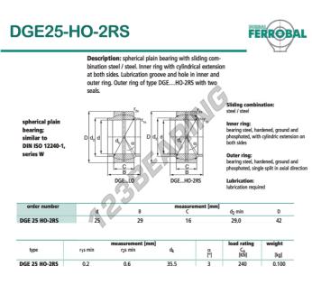 Il Giunti Sferici Ge noto come DGE25-HO-2RS-DURBAL DURBAL ha un diametro interno di 25 mm, un diametro esterno di 42 mm e uno spessore di 16 mm.