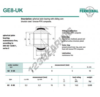 Il Giunti Sferici Geew noto come DGE8-UK-DURBAL DURBAL ha un diametro interno di 8 mm, un diametro esterno di 16 mm e uno spessore di 5 mm.