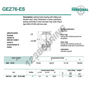 Il Giunti Sferici Geew noto come GEZ76-ES-DURBAL DURBAL ha un diametro interno di 76.2 mm, un diametro esterno di 120.65 mm e uno spessore di 57.15 mm.
