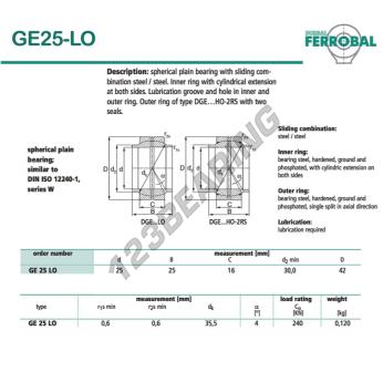 Il Giunti Sferici Geg noto come GE25-LO-DURBAL DURBAL ha un diametro interno di 25 mm, un diametro esterno di 42 mm e uno spessore di 16 mm.