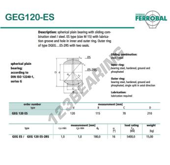 Il Giunti Sferici Geg noto come GEG120-ES-DURBAL DURBAL ha un diametro interno di 120 mm, un diametro esterno di 210 mm e uno spessore di 70 mm.