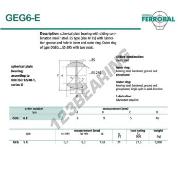 Il Giunti Sferici Geg noto come GEG6-E-DURBAL DURBAL ha un diametro interno di 6 mm, un diametro esterno di 16 mm e uno spessore di 5 mm.