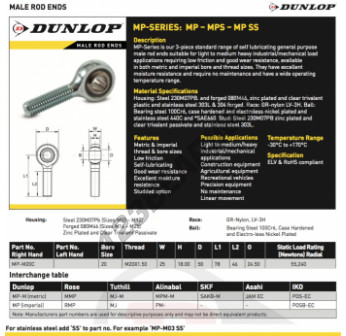 Il Giunti Sferici Sa noto come MP-M20-C-DUNLOP DUNLOP ha un passo della vite di , un diametro interno di 20 mm, un diametro esterno di 50 mm e uno spessore di 18 mm.