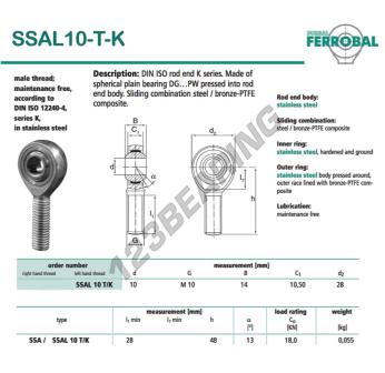 Il Giunti Sferici Sa noto come SSAL10-T-K-DURBAL DURBAL ha un passo della vite di , un diametro interno di 10 mm, un diametro esterno di 28 mm e uno spessore di 14 mm.