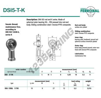 Il Giunti Sferici Si noto come SI5-T-K-DURBAL DURBAL ha un diametro interno di 5 mm, un diametro esterno di 18 mm e uno spessore di 8 mm.