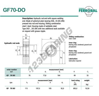 Il Giunti Sferici Tpn noto come DGF70-DO-DURBAL DURBAL ha un diametro interno di 70 mm, un diametro esterno di 164 mm e uno spessore di 55 mm.