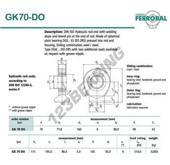 Il Giunti Sferici Tpn noto come GK70-DO-DURBAL DURBAL ha un diametro interno di 70 mm, un diametro esterno di 160 mm e uno spessore di 49 mm.